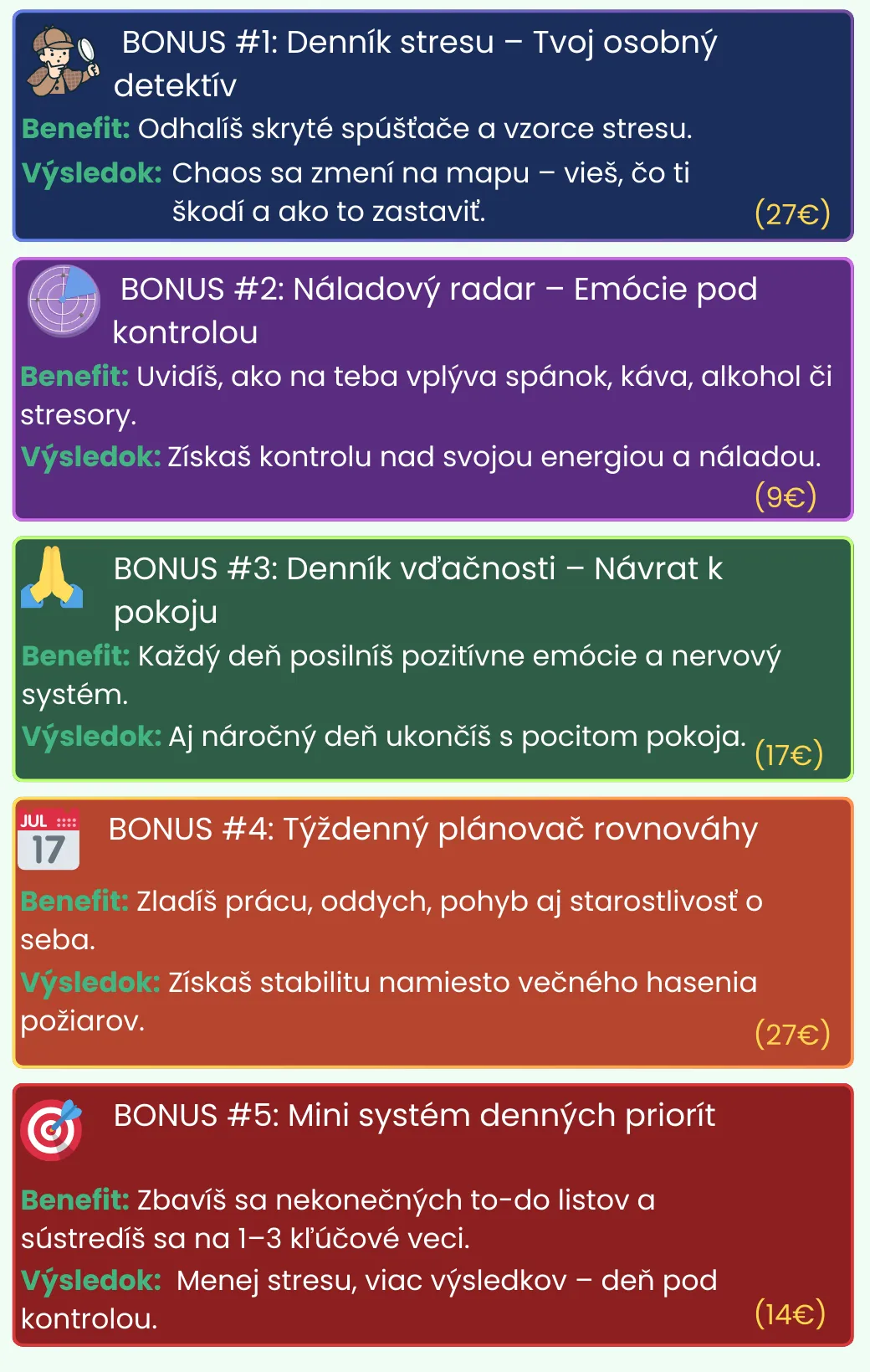 🧰 Bonusové nástroje – denníky, krízové karty, relaxačné pomôcky.